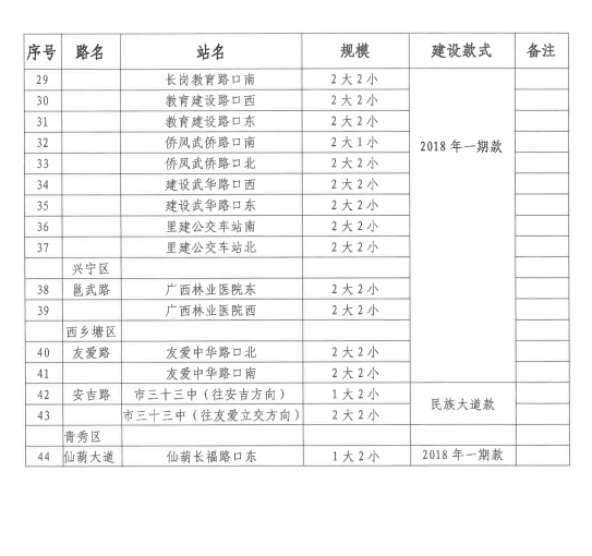 根據(jù)《南寧市交通運輸局關(guān)于下達(dá)2020年新建公交候車亭項目(第三期)建設(shè)計劃的通知》,點位表詳見附件