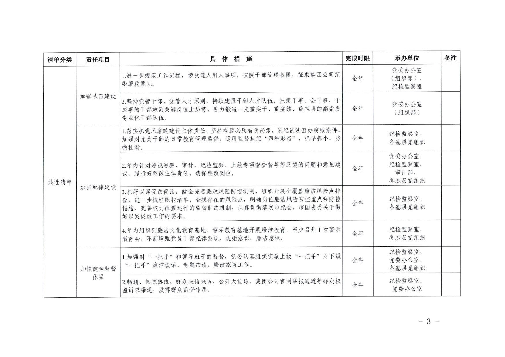 南寧交投集團領導班子2025年度黨風廉政建設主體責任清單
