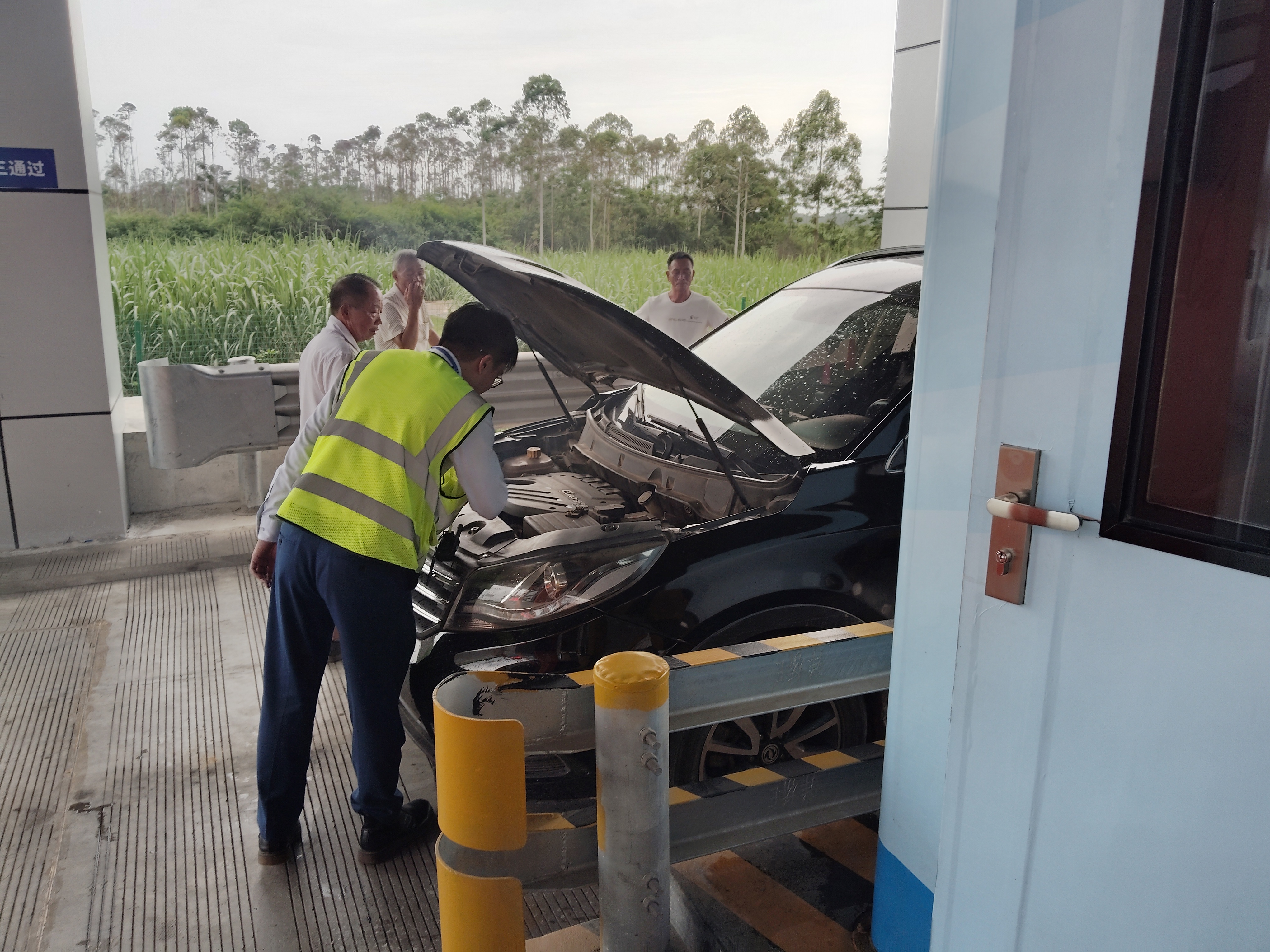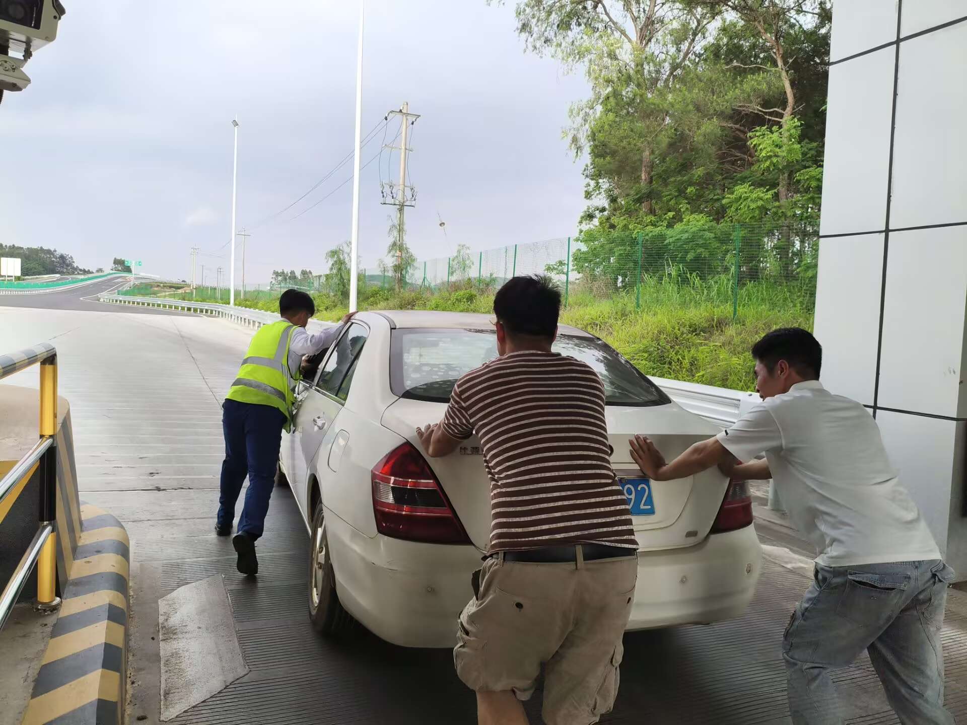 6月14日15時許,在林橫高速洋橋收費站,一輛小轎車在下高速時因發(fā)動機故障滯留在車道中并伴有白煙冒出,因事發(fā)時正逢暴雨,情況險急。當班收費員周秋吉、吳星煒察覺異常后第一時間上報監(jiān)控中心并開啟備用車道,迅速引導后方車流安全有序轉(zhuǎn)移,同時取用滅火器隨時準備應對突發(fā)情況。在確認車輛無法啟動且白煙仍在持續(xù)冒出時,收費員冒雨協(xié)同司乘將車輛推離車道,轉(zhuǎn)移至收費站外廣場安全地帶停放,并幫助司乘聯(lián)系拖車,暖心服務(wù)讓司乘連連“點贊”。