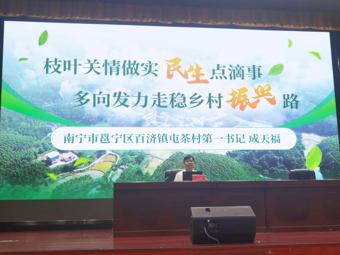 6月17日,南寧市委組織部在市委黨校舉辦2025年新一輪駐村第一書記示范培訓(xùn)班,邀請了南寧交投集團下屬南寧高速公路公司選派邕寧區(qū)百濟鎮(zhèn)屯茶村原第一書記成天福進行授課。