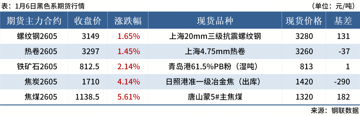 ◎ 1月6日,全國主港鐵礦石成交133.60萬噸,環(huán)比增32.1%;237家主流貿(mào)易商建筑鋼材成交9.66萬噸,環(huán)比增11.3%。