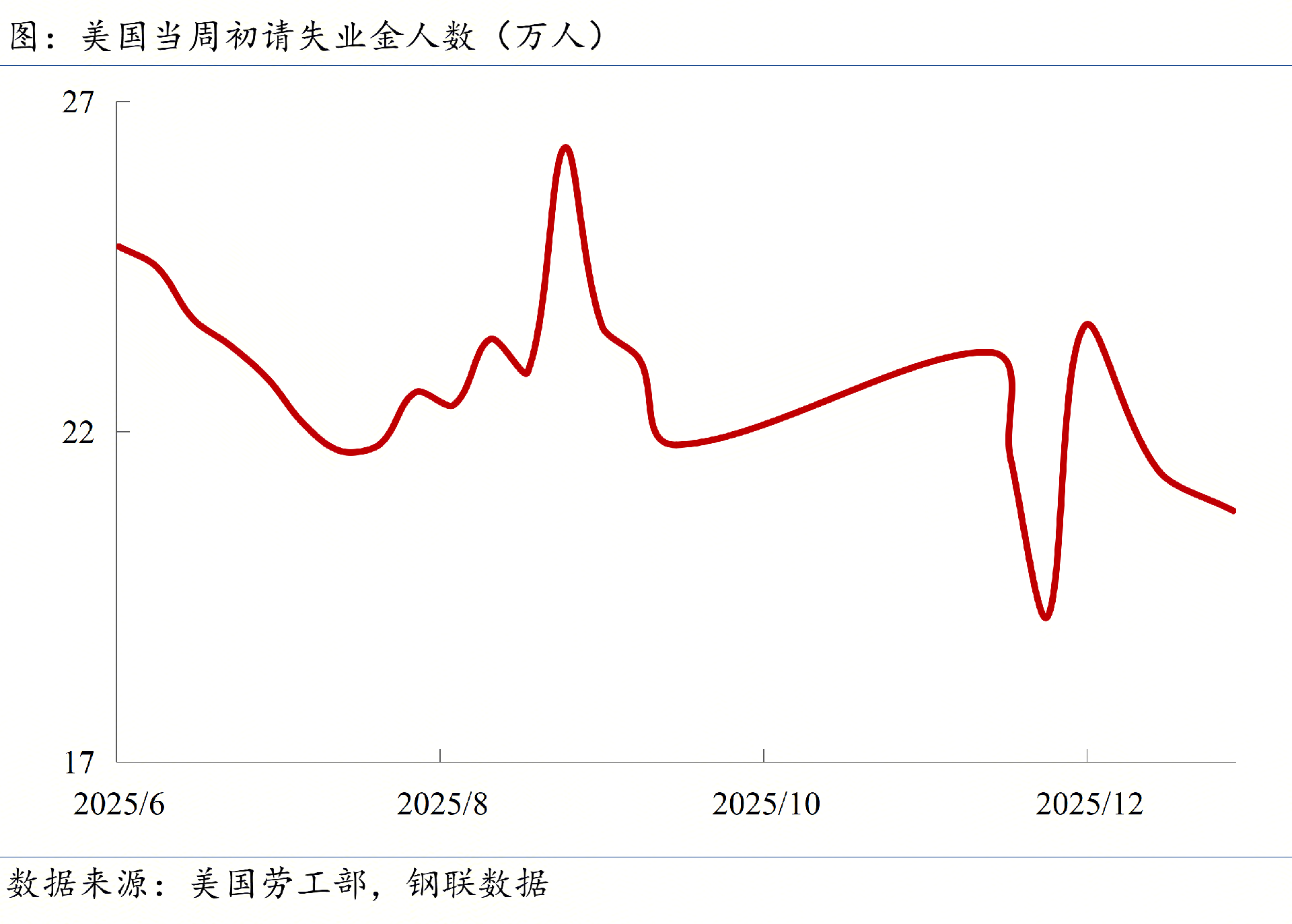 ◎美國勞工局最新數(shù)據(jù)顯示,截至2026年1月3日當周,美國初請失業(yè)金人數(shù)為?20.8萬人?,低于市場預期的21萬人,仍處于歷史低位區(qū)間。
