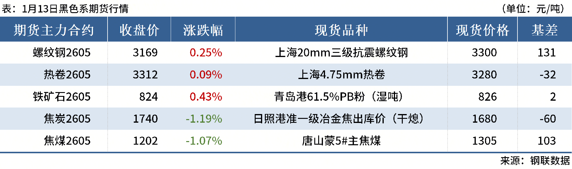 ◎1月13日,全國主港鐵礦石成交84.10萬噸,環(huán)比增11.8%;237家主流貿(mào)易商建筑鋼材成交8.36萬噸,環(huán)比減20.9%。