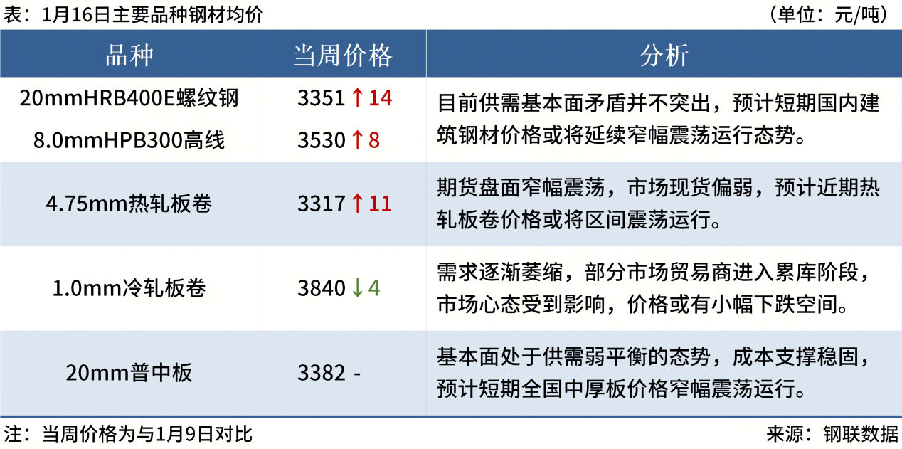 ◎ 1月16日,全國主港鐵礦石成交111.23萬噸,環(huán)比增13.4%;237家主流貿(mào)易商建筑鋼材成交9.51萬噸,環(huán)比增10.4%。