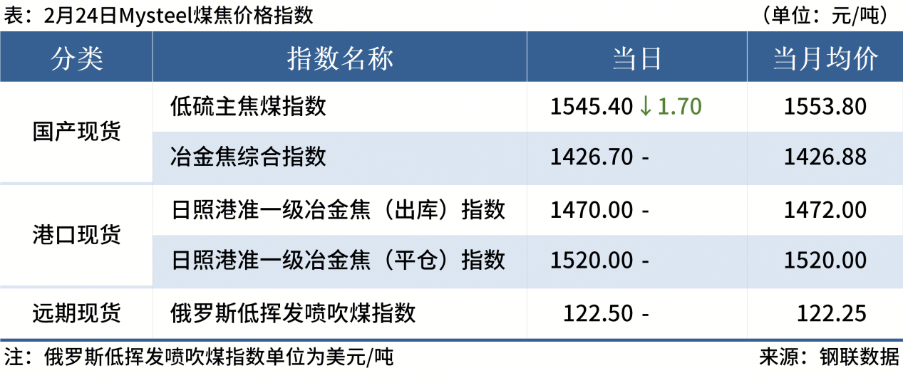 ◎ 本周,全國230家獨立焦企樣本產(chǎn)能利用率為71.86%,較節(jié)前(2月13日)減0.11%;焦炭日均產(chǎn)量50.28萬噸,減0.09萬噸;焦炭庫存55.52萬噸,增11.77萬噸。