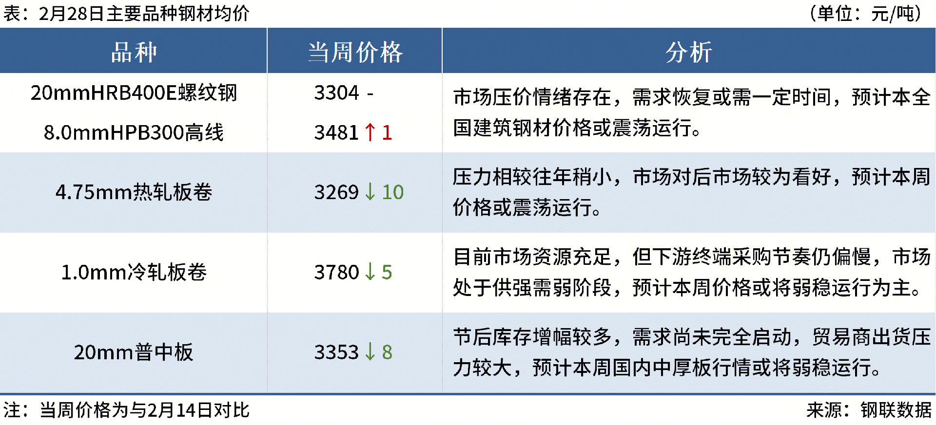 ◎3月1日,江蘇永鋼出臺(tái)3月上旬出廠價(jià),螺紋鋼平穩(wěn)、線材盤螺平穩(wěn),現(xiàn)螺紋鋼3450元/噸,線材盤螺3700元/噸。